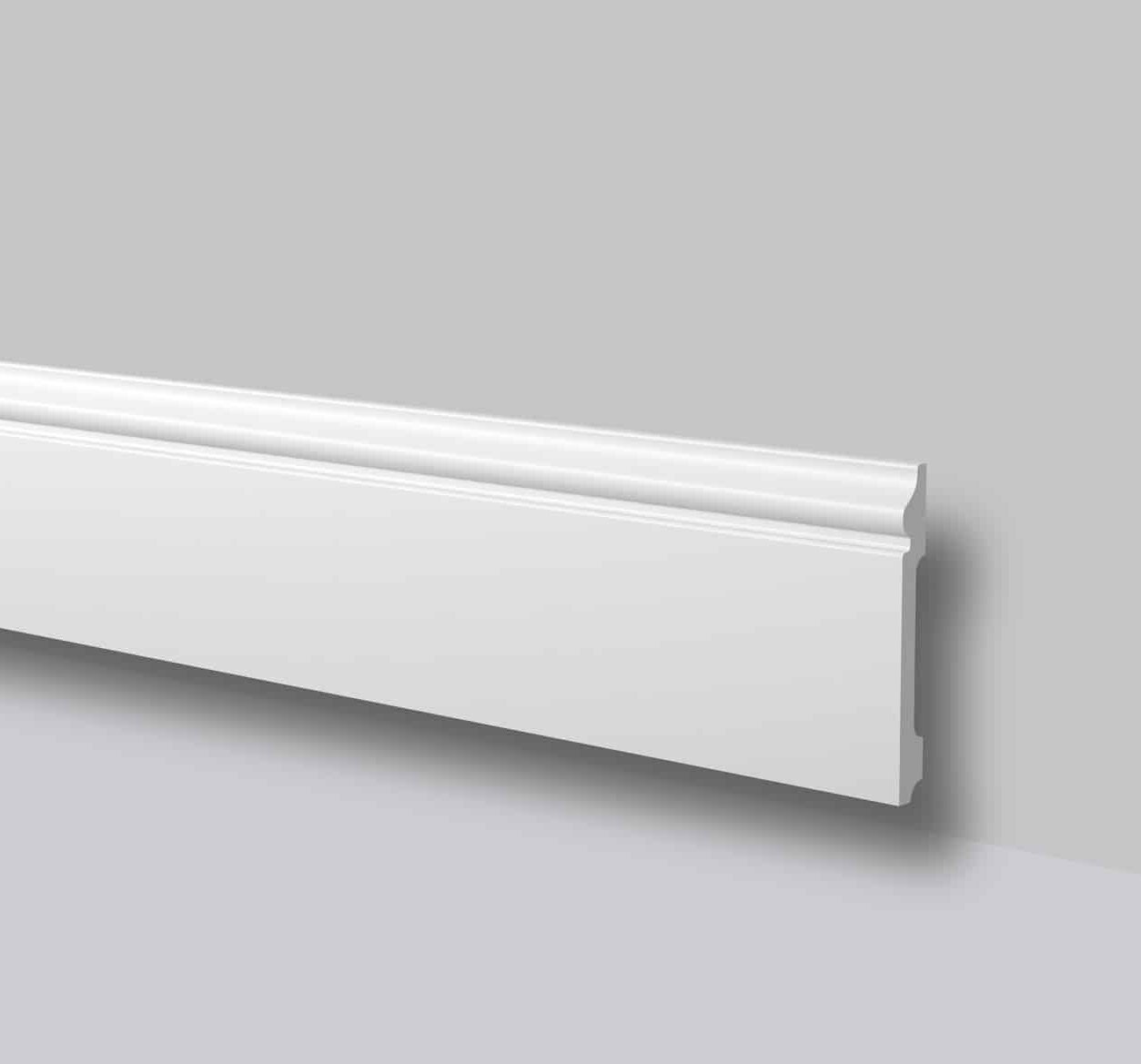 Elegant fodpanel i slagfast polystyren. Fodlisten er hård og slagfast mod mærker. Fodisten er formalet hvid. Passer til alle boliger. Listen kan sættes nemt op med lim i stedet for at bruge skruer eller søm.