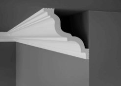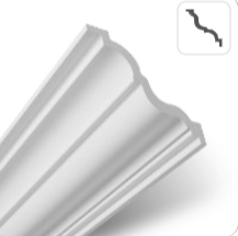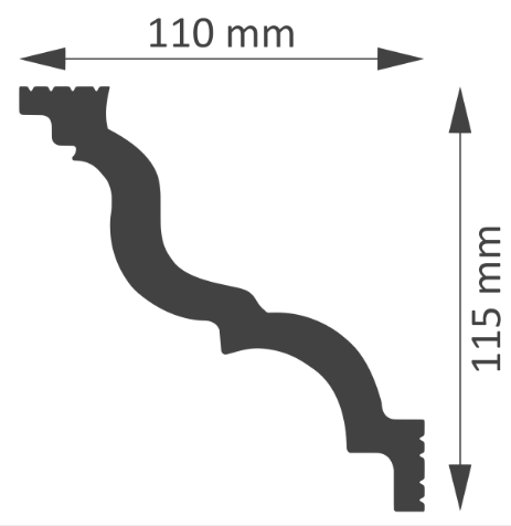Denne stukliste i flamingo måler: 11 cm x 11,6 cm. Alle stuklister kommer i længder af 2 meter.